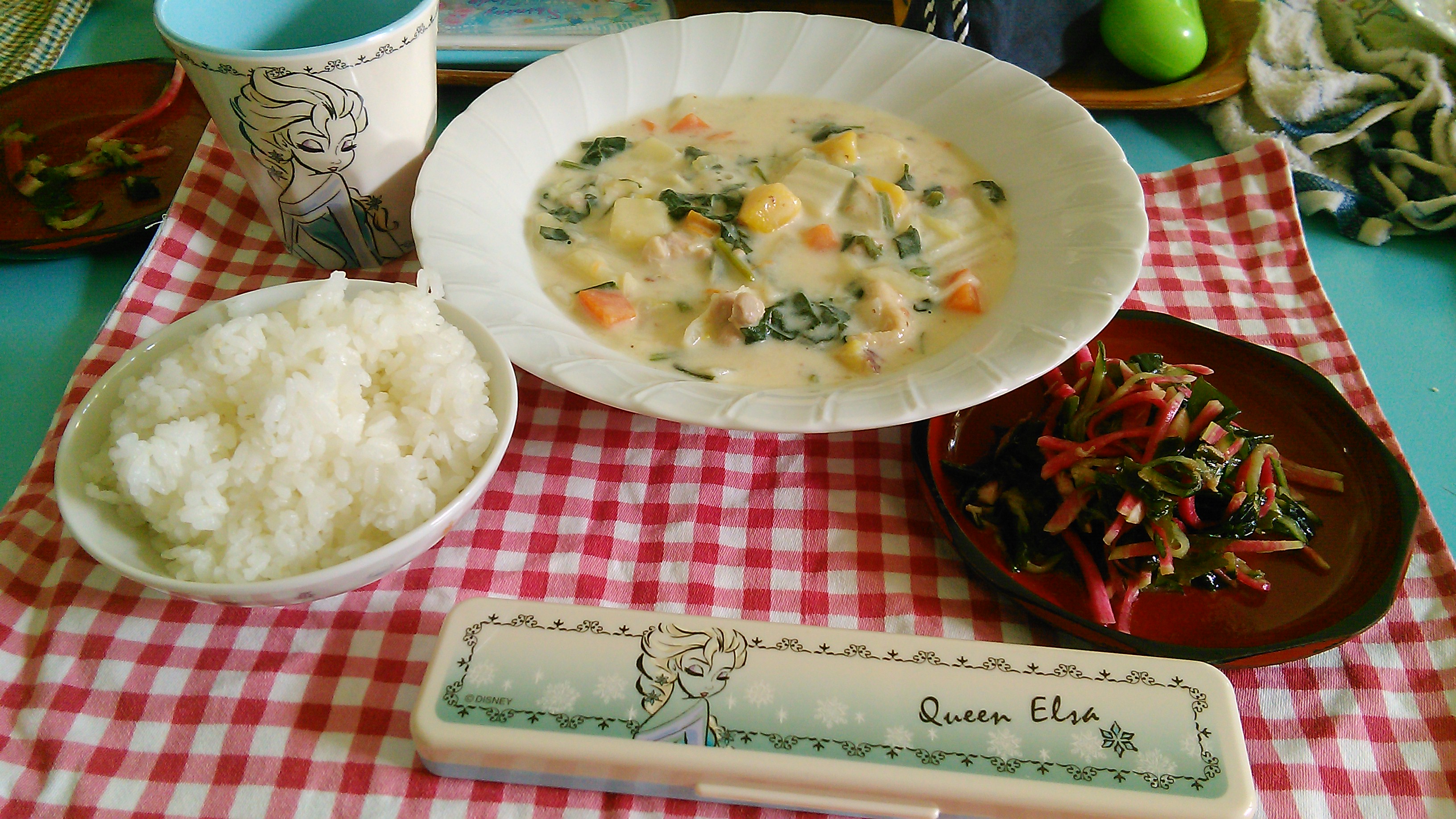 シチューは、小麦アレルギーの子供がいるので、ルウを使わず、米粉で☆