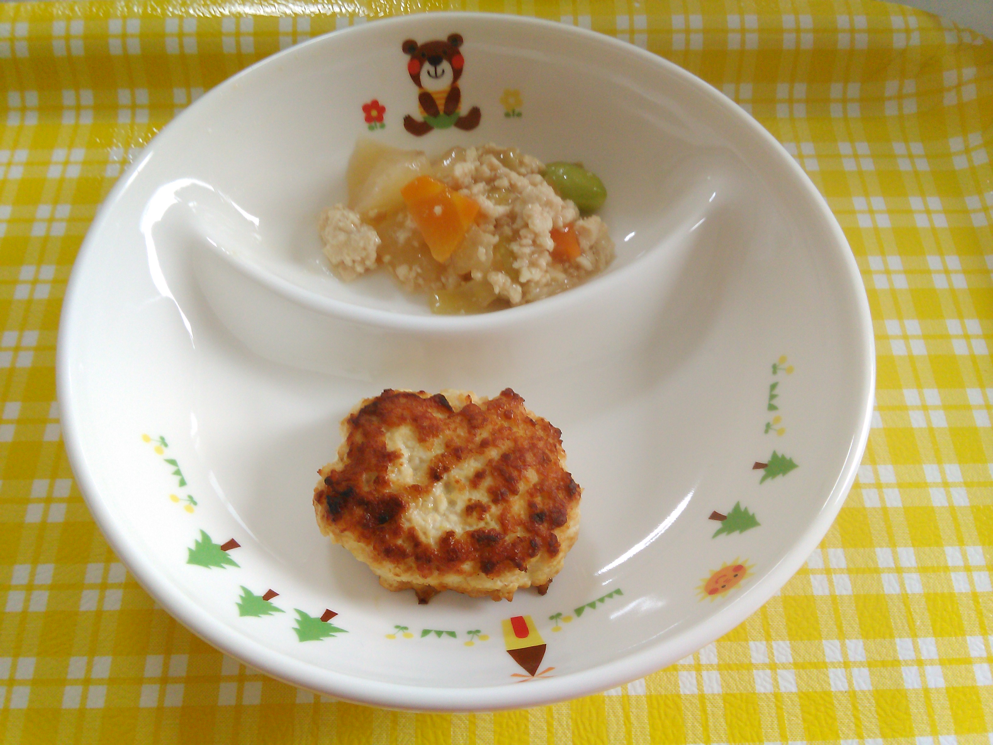 魚アレルギーの子供は、鶏ハンバーグにしました。